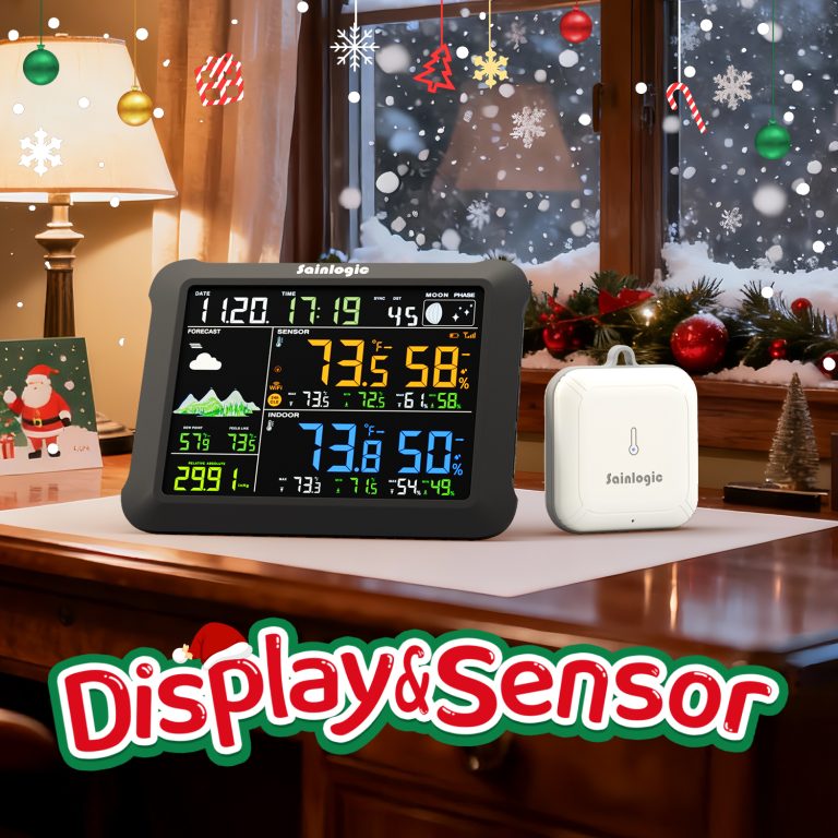 即梦生成的场景图 + 渲染的带阴影白底图 + 调色 + 设计,亚马逊圣诞节店铺装修 SA1气象仪 1:1视频封面